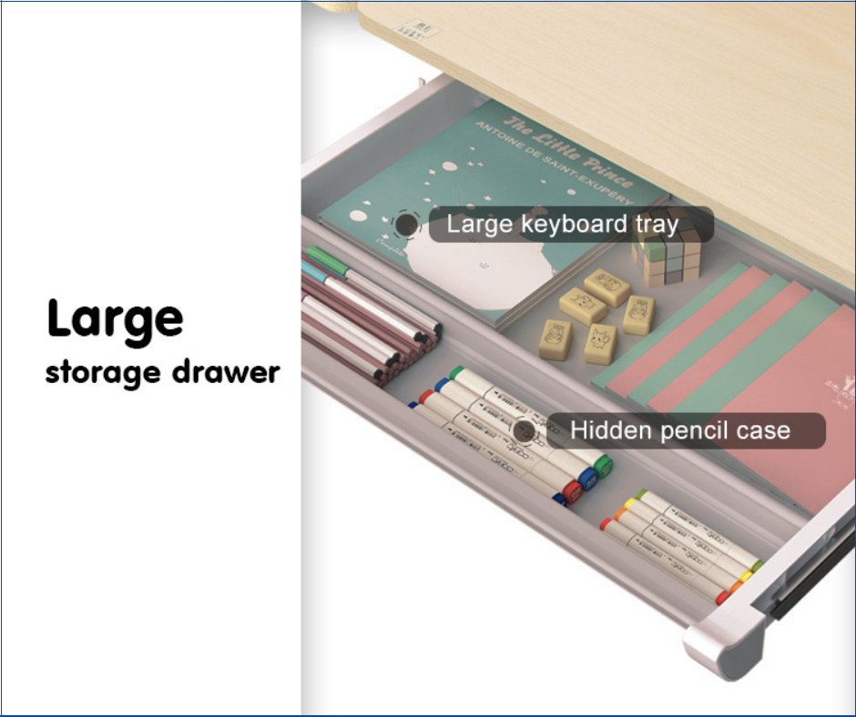 – Không nên chọn bàn có mặt phẳng ngang vì chỉ phù hợp khi ngồi nói chuyện, ăn cơm. Bố mẹ nên chọn bàn có mặt phẳng nghiêng hơi nghiêng về phía bé là thích hợp nhất. Vì với bàn có góc nghiêng sẽ khiến mắt bé dễ nhìn, đọc, viết, không bị mỏi và tư thế ngồi ngay ngắn, lưng, cổ thẳng.
