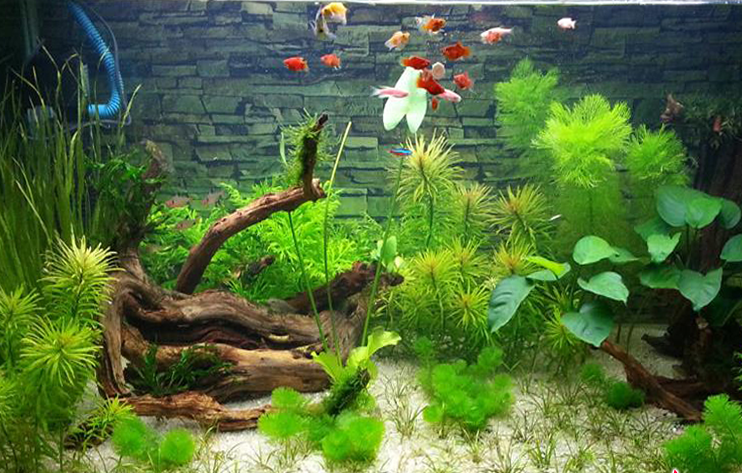 Bể cá thủy sinh: Ngoài việc thả cá chiếc bể còn đóng vai trò như một bức tranh thiên nhiên hoàn chỉnh khi bên trong đó là những loài cây thủy sinh kết hợp với đó là tiểu cánh đẹp mắt, mang đến không gian thiên nhiên sống động cho ngôi nhà.
