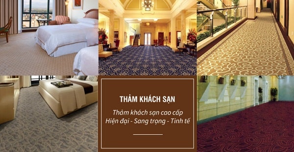 Các sản phẩm thảm khách sạn đều có màu sắc sang trọng. Hoa văn độc đáo với chất liệu cao cấp từ len, bông hay sợi tổng hợp. Kích thước thảm trải khách sạn cũng rất đa dạng thường có kích thước lớn. Các chất liệu thảm trải sàn cao cấp giúp dễ dàng vệ sinh thảm sẽ là lựa chọn thảm khách sạn tốt nhất.