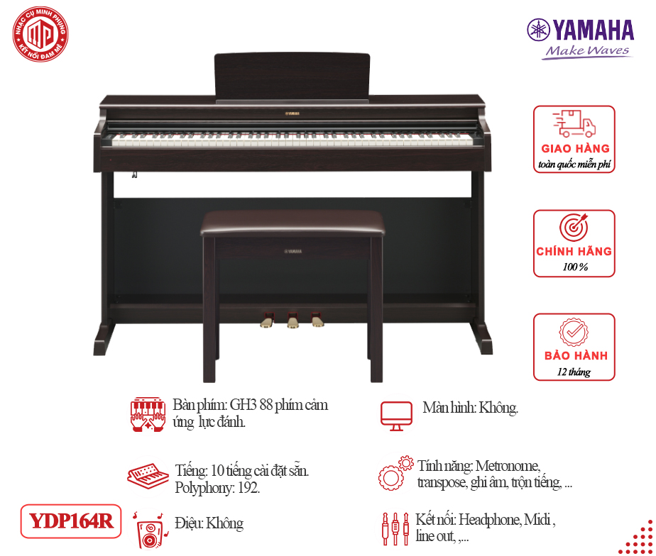 Đàn Piano Điện Yamaha không chỉ nổi tiếng ở Việt Nam mà trên toàn thế giới. Đàn Piano điện Yamaha là sự lựa chọn hàng đầu của giới nghệ sĩ, ca sĩ bởi công nghệ sản xuất hiện đại. Thiết kế vững chắc và tuổi thọ sử dụng lâu dài theo năm tháng.